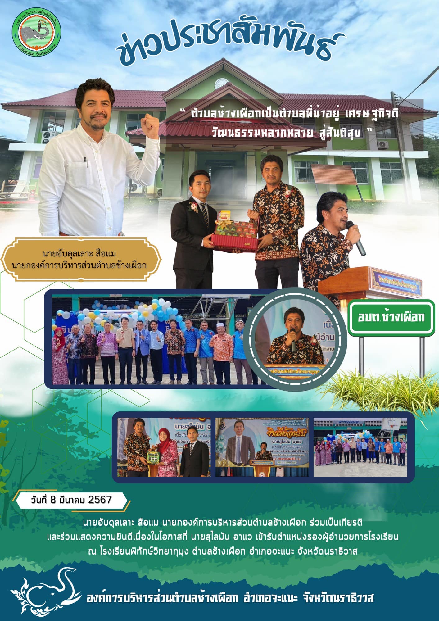 วันที่ 8 มีนาคม 2567 นายอับดุลเลาะ สือแม นายกองค์การบริหารส่วนตำบลช้างเผือก ร่วมเป็นเกียรติและร่วมแสดงความยินดีเนื่องในโอกาสที่ นายสุไลมัน อาแว เข้ารับตำแหน่งรองผู้อำนวยการโรงเรียนพิทักษ์วิทยากุมุง ณ โรงเรียนพิทักษ์วิทยากุมุง ตำบลช้างเผือก อำเภอจะแนะ จังหวัดนราธิวาส