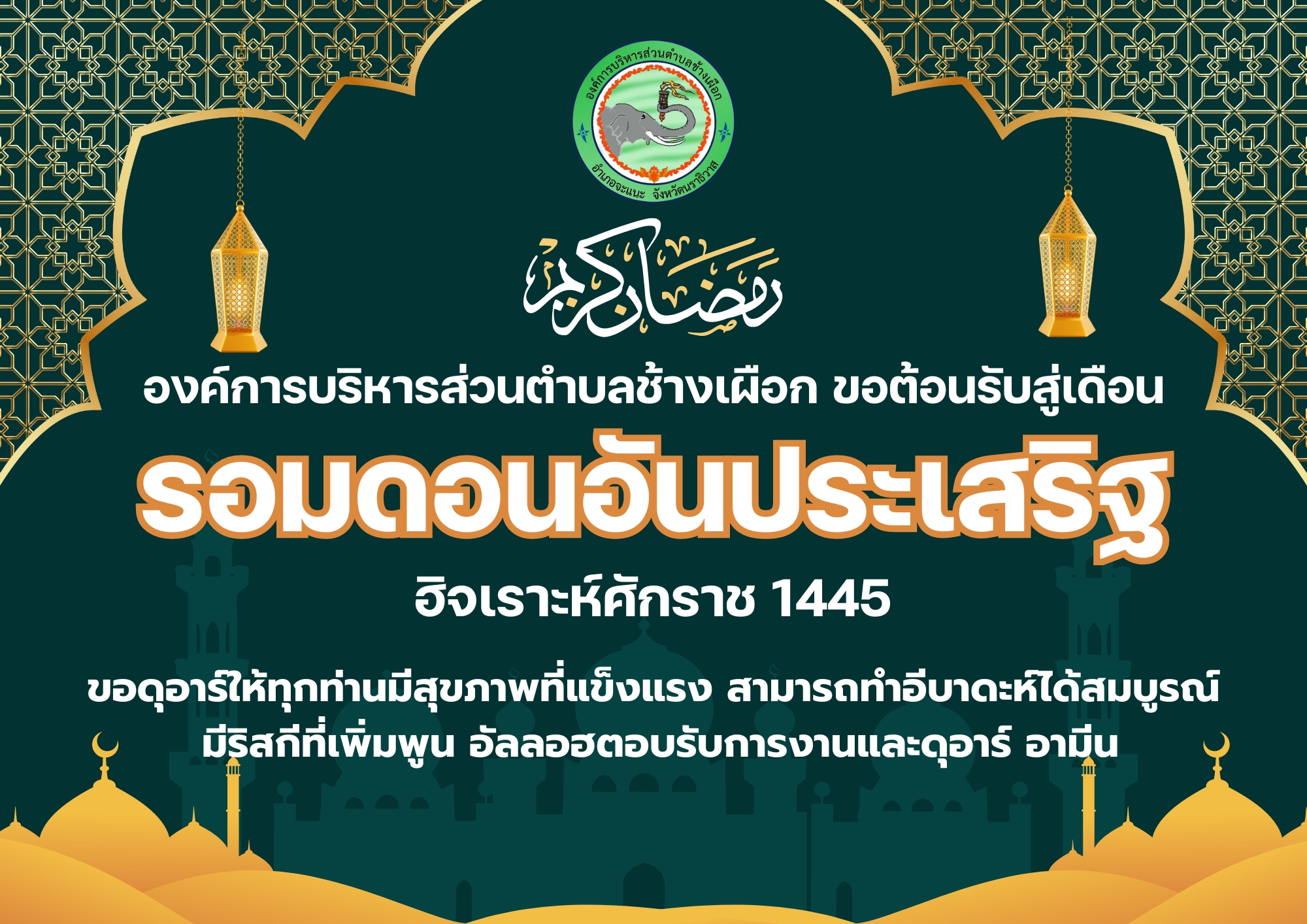 องค์การบริหารส่วนตำบลช้างเผือก ขอต้อนรับสู่เดือน "รอมฎอนอันประเสริฐ" ขอดุอาร์ให้ทุกท่านมีสุขภาพแข็งแรง สามารถทำอีบาดะห์ได้สมบูรณ์มีริสกีที่เพิ่มพูน อัลลอฮตอบรับการงานและดุอาร์ อามีน"