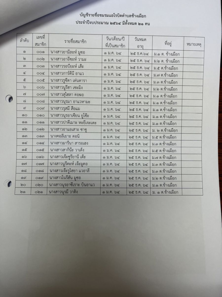 กิจกรรมเต้นแอโรบิค ลดพุง ณ องค์การบริหารส่วนตำบลช้างเผือก อ.จะแนะ จ.นราธิวาส.