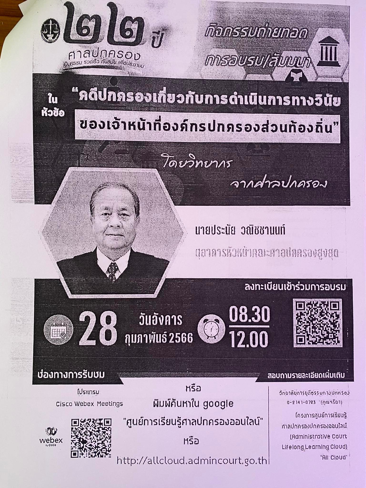 ประชาสัมพันธ์การจัดอบรมหัวข้อ "คดีปกครองเกี่ยวกับการดำเนินการทางวินัยของเจ้าหน้าที่ องค์กรปกครองส่วนท้องถิ่น"