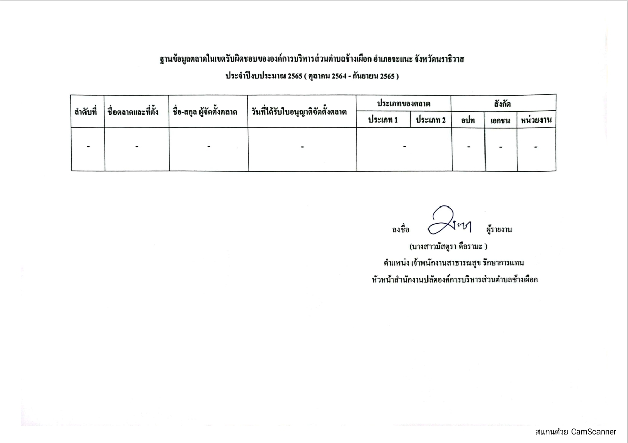 ฐานข้อมูลตลาดตำบลช้างเผือก ปีงบประมาณ 2565